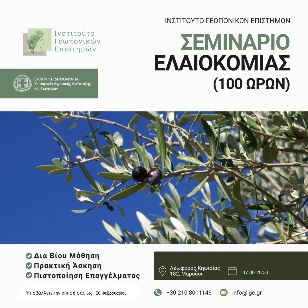 Εξαιρετικό παρθένο ελαιόλαδο από τα ελαιόδεντρα του ΙΓΕ